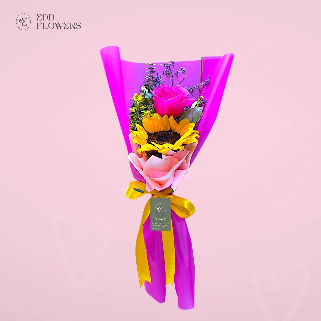 - Ramo de 1 rosa y 1 girasol